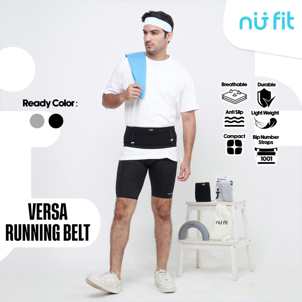 Running Belt adalah lipatan yang mengikat pinggangmu yang bertujuan untuk menyimpan barang-barang selama kamu berlari atau berolahraga tanpa harus ribet memegang barang-barang bawaan anda. Running Belt ini juga memudahkan pelari untuk mengeluarkan barang-barang dari tempatnya saat bergerak dan benar-benar bisa menjadi fashion yang meningkatkan kenyamananmu saat berlari.